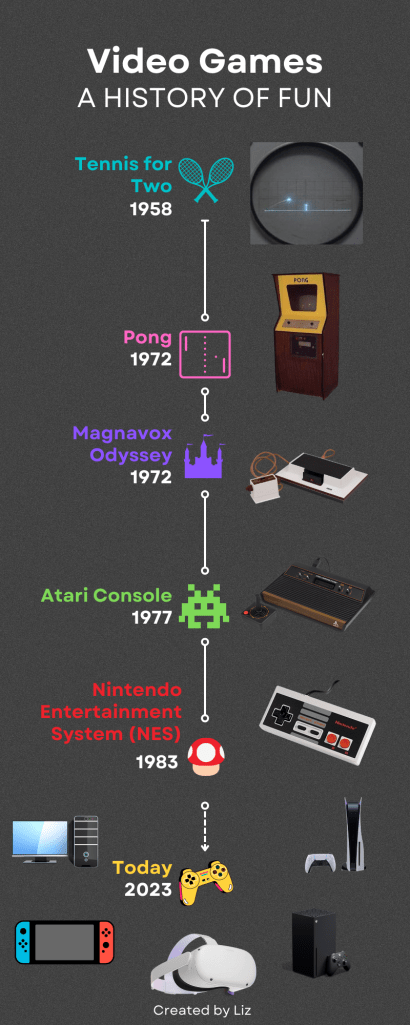 Now that we know a bit more about what games came to be, celebrate National Video Game Day with me and pick up your Nintendo Switch, dust off that old GameBoy, or play whatever you choose! My personal favorites are the Switch and PC gaming, and I love RPGs, farming simulators, and horror games. What are your favorites? Tell me down below in the comments, and let’s get gaming!